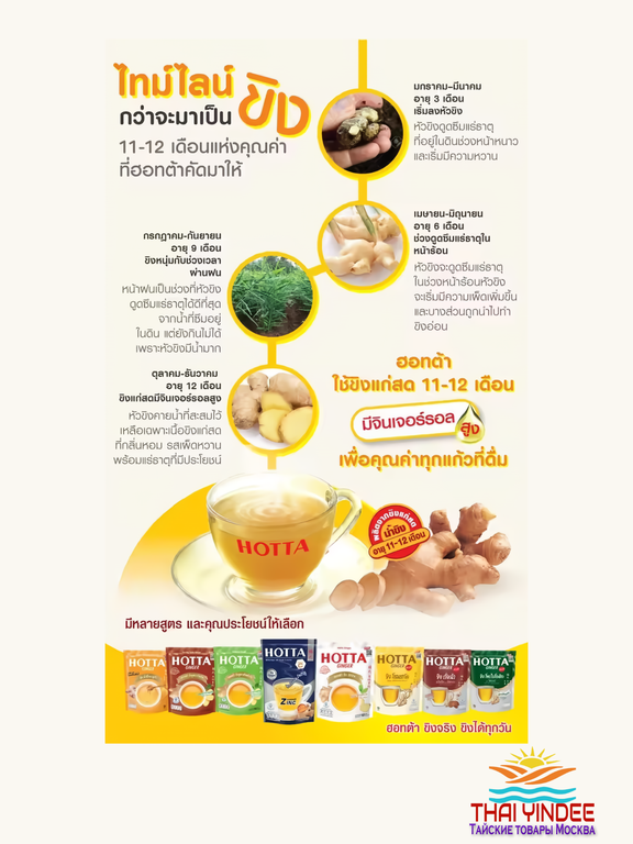Тайский оригинальный имбирный чай HOTTA Original Ginger 126 гр (14 саше)